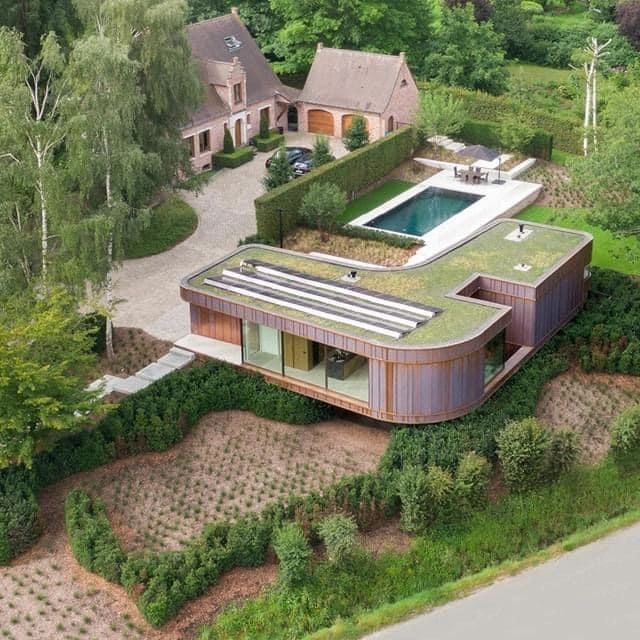 Voor deze nieuwbouwwoning in Michelbeke realiseerden we een plat dak met duurzame afwerking. Het dak werd bedekt met EPDM Evalastic, een elastisch en weerbestendig materiaal. Bovenop plaatsten we een groendak dat zorgt voor extra isolatie, waterbuffering en een groene meerwaarde voor de woning.